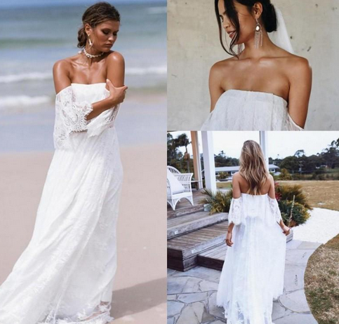 Off The Shoulder Lace Beach Wedding Dresses Rustic Boho Wedding